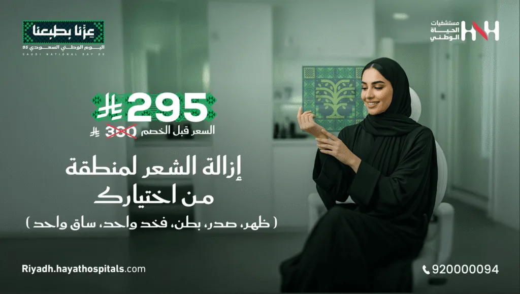 تخلصي من الشعر الزائد بعروض اليوم الوطني باستخدام أحدث اجهزة ازالة الشعر بالليزر مع الرتوش و بإشراف كادر طبي متخصص مع استشارية الأمراض الجلدية و التجميل