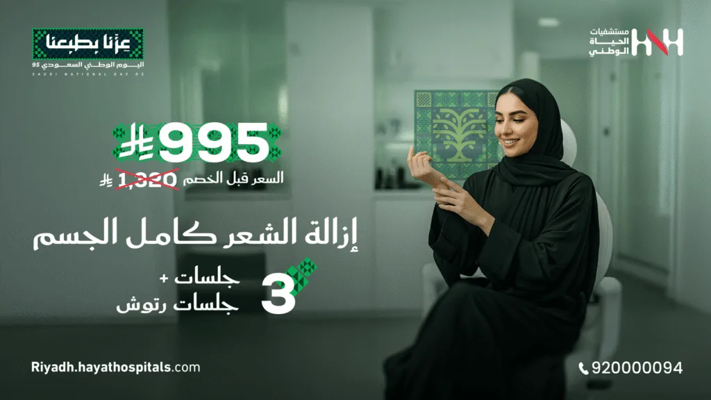 تخلصي من الشعر الزائد بعروض اليوم الوطني باستخدام أحدث اجهزة ازالة الشعر بالليزر مع الرتوش و بإشراف كادر طبي متخصص مع استشارية الأمراض الجلدية و التجميل